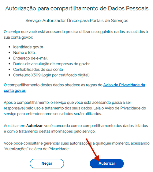 - Autorize o compartilhamento de dados (se esta tela não aparecer vá direto para o próximo passo).