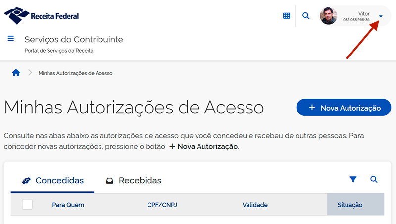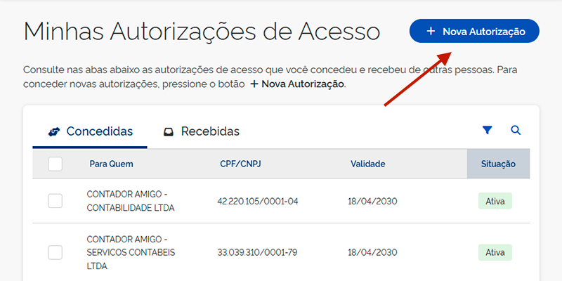 - Clique em Nova Autorização.