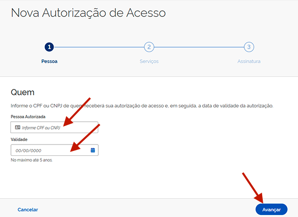 - Em Pessoa Autorizada, informe o CNPJ do Contador Amigo: 96533310000140 e defina a validade que achar mais conveniente (recomendamos 5 anos).