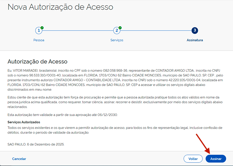 - Pronto, sua procuração foi assinada! Avise a equipe do Contador Amigo pelo WhatsApp ou Email.