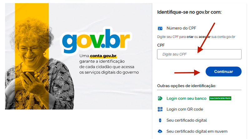 - Digite seu CPF e depois clique no botão continuar. Em seguida aparecerá o campo para você digitar a senha.